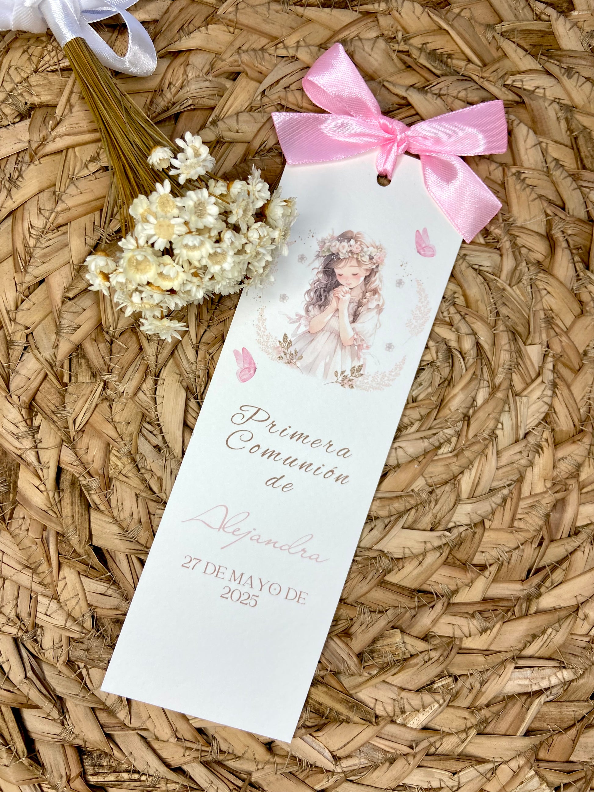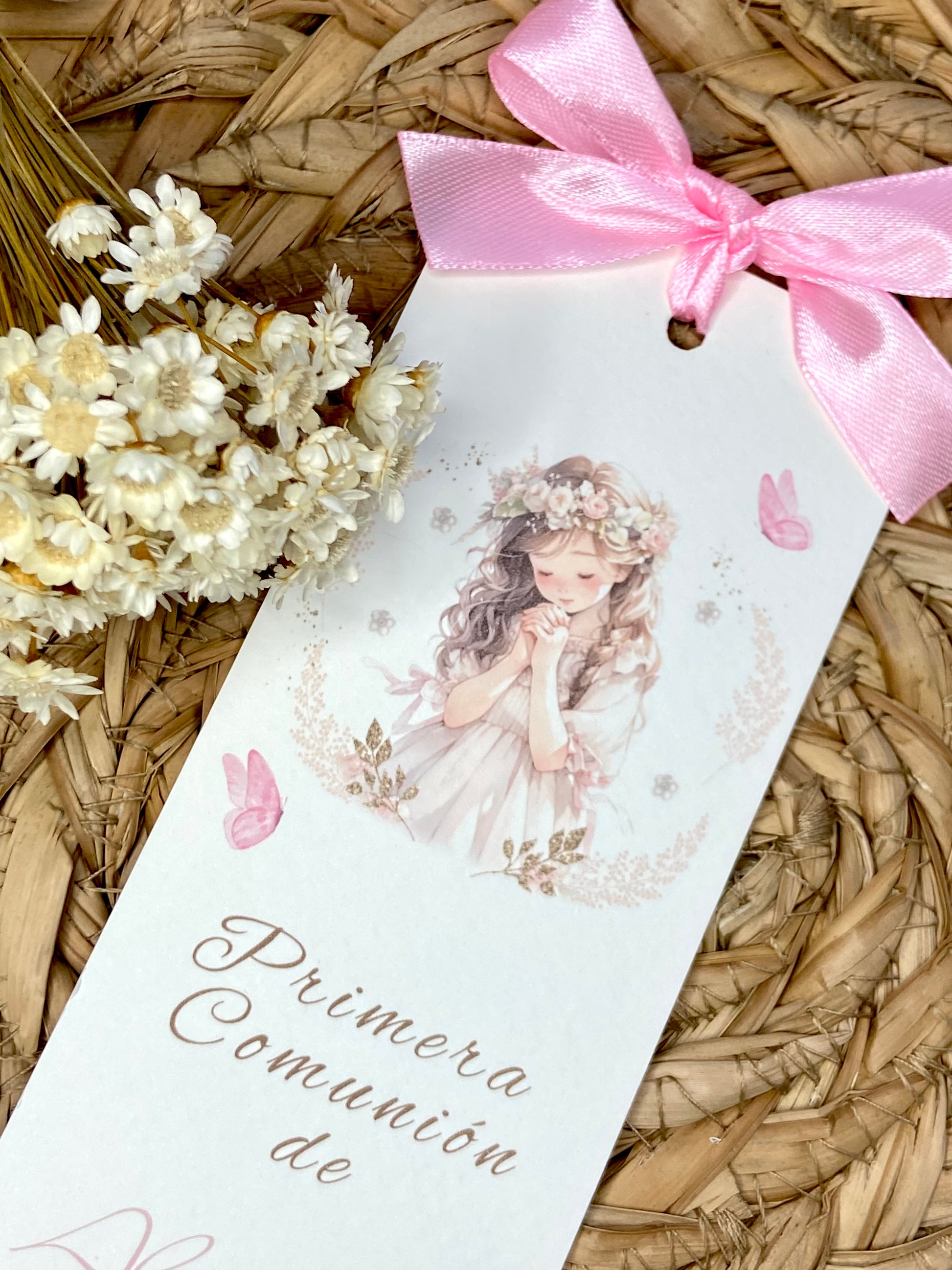 Marcapáginas de comunión diseñados para elegir el estilo perfecto: uno para niño y otro para niña. Cada uno refleja la dulzura de este día especial, en colores y detalles acordes a cada estilo. Un recuerdo único para que los invitados puedan llevar consigo la esencia de este momento tan importante. ¡Elige el diseño que mejor represente a tu pequeño o pequeña en su día!